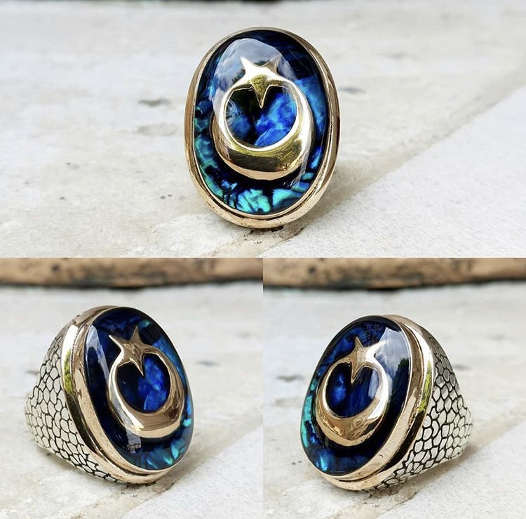 925 Ayar Ayyıldızlı Mineli Okyanus Sedefli Gümüş Yüzük. Ürünlerimizin tamamı 925 ayar gümüşten üretilip doğal taşlar ile tasarlanmaktadır. Ürünlerimiz Türkiye’ nin her yerine sigortalı olarak gönderilmektedir.  Kişiye özel ürün siparişleri için lütfen bizimle iletişime geçiniz.