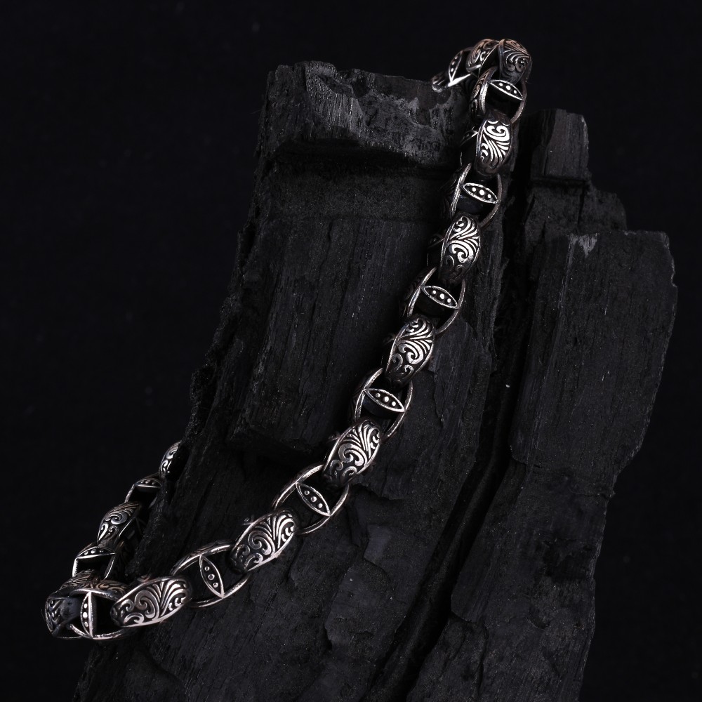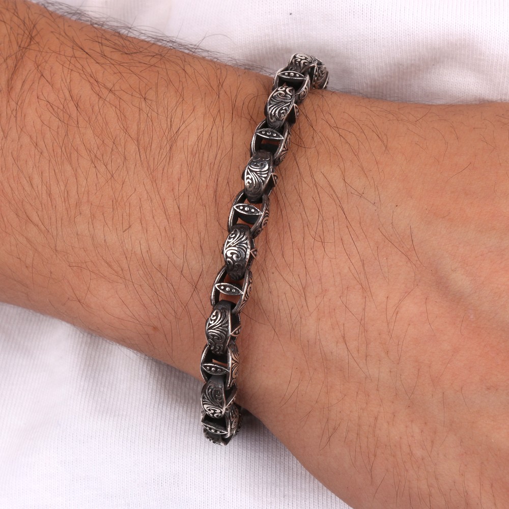 925 Ayar Gümüş Çiçek Desenli Erkek Bileklik , firmamızın üretimidir. Ürünlerimizin tamamı 925 ayar gümüşten üretilip doğal taşlar ile tasarlanmaktadır. Ürünlerimiz Türkiye’ nin her yerine sigortalı olarak gönderilmektedir.