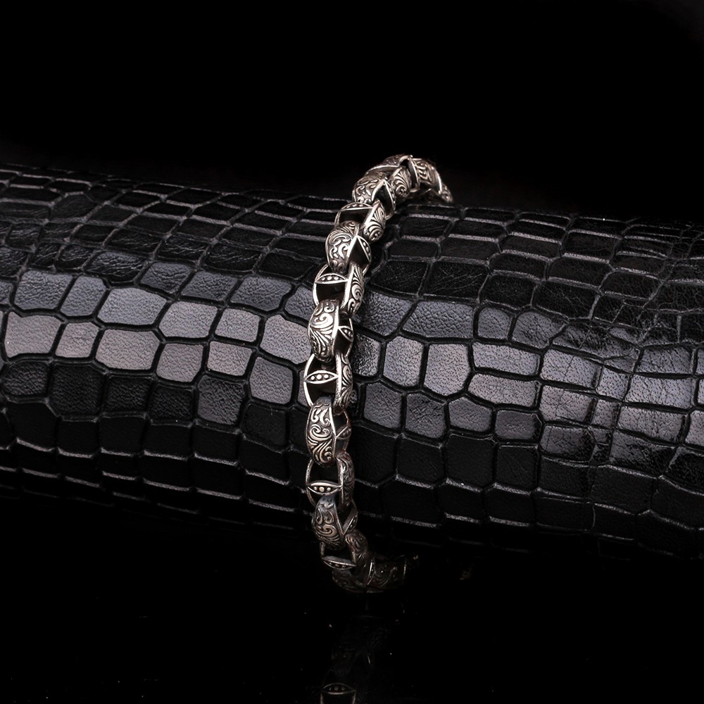 925 Ayar Gümüş Çiçek Desenli Erkek Bileklik