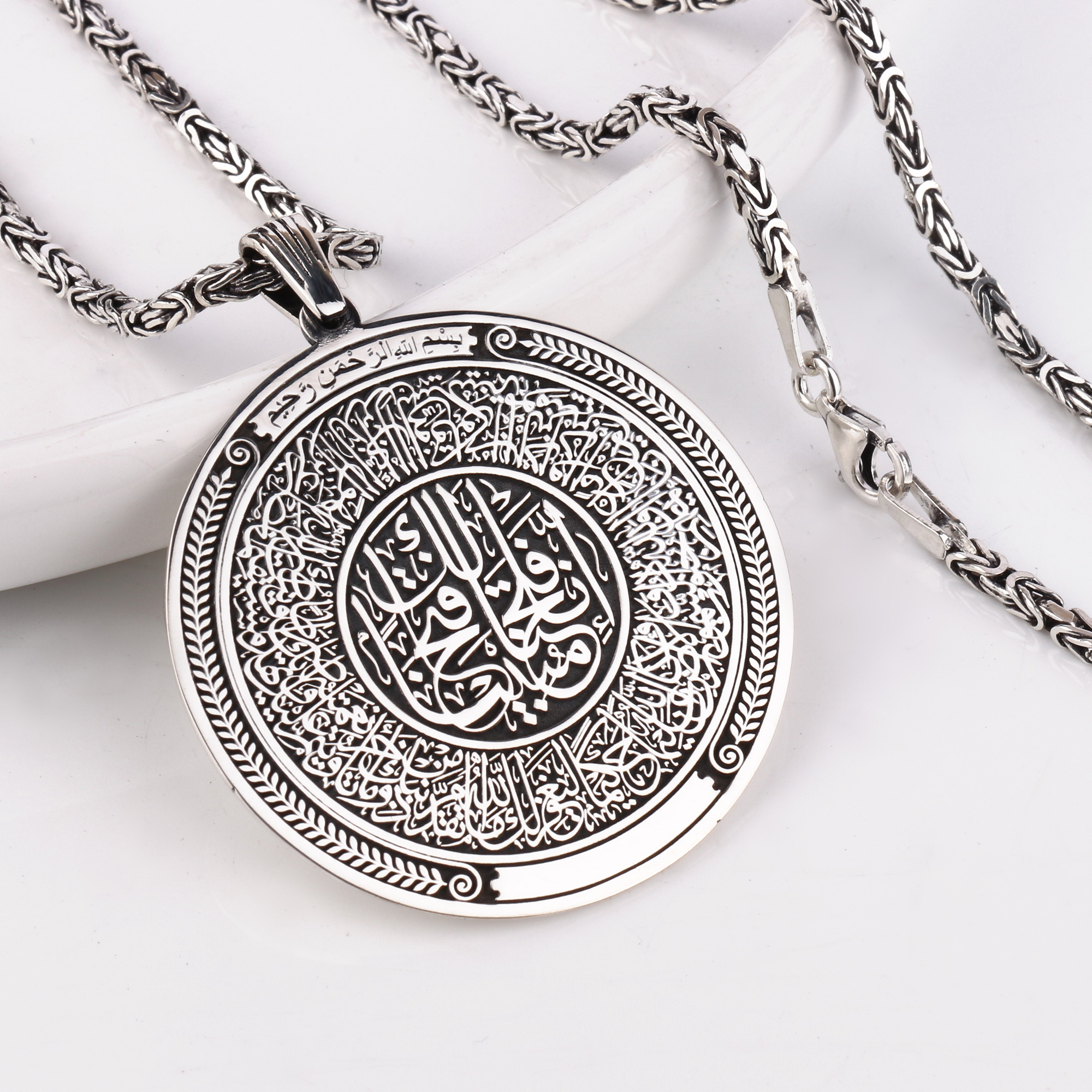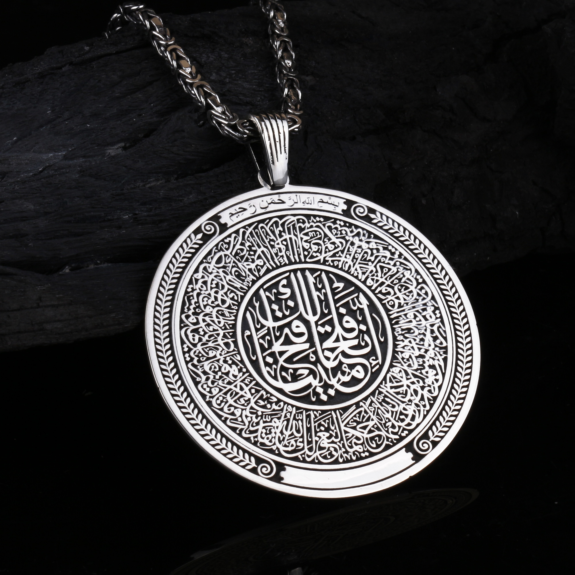 FKGümüş olarak sunduğumuz 925 ayar gümüşten özel olarak tasarlanmış ‘Fetih Suresi İlk Dört Ayeti‘ yazılı madalyon, eşsiz ve anlamlı bir aksesuar sunuyor. Gümüşün zarafetiyle buluşan bu madalyon, Türk kültürünün derin anlamlarını taşıyor ve benzersiz bir estetik sunuyor.Özel günlerde hediye olarak sevdiklerinize anlamlı bir armağan olabilir veya günlük kullanımda size eşlik edebilir.