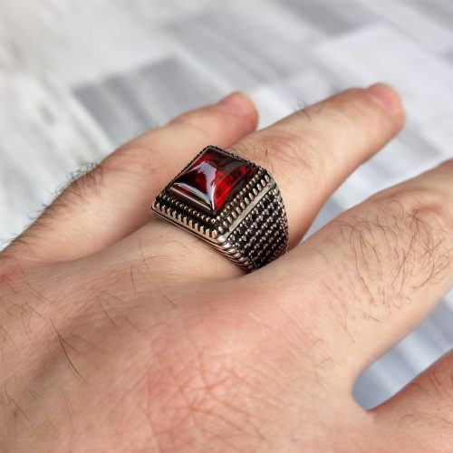 925 Ayar Gümüş Kırmızı Kapşon Taşlı Erkek Yüzük , Kendi firmamızın üretimidir. Ürünlerimizin tamamı 925 ayar gümüşten üretilip doğal taşlar ile tasarlanmaktadır. Ürünlerimiz Türkiye’ nin her yerine sigortalı olarak gönderilmektedir.