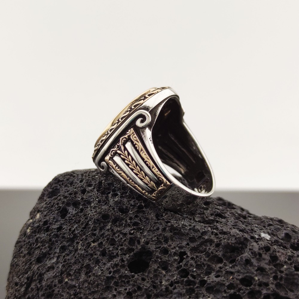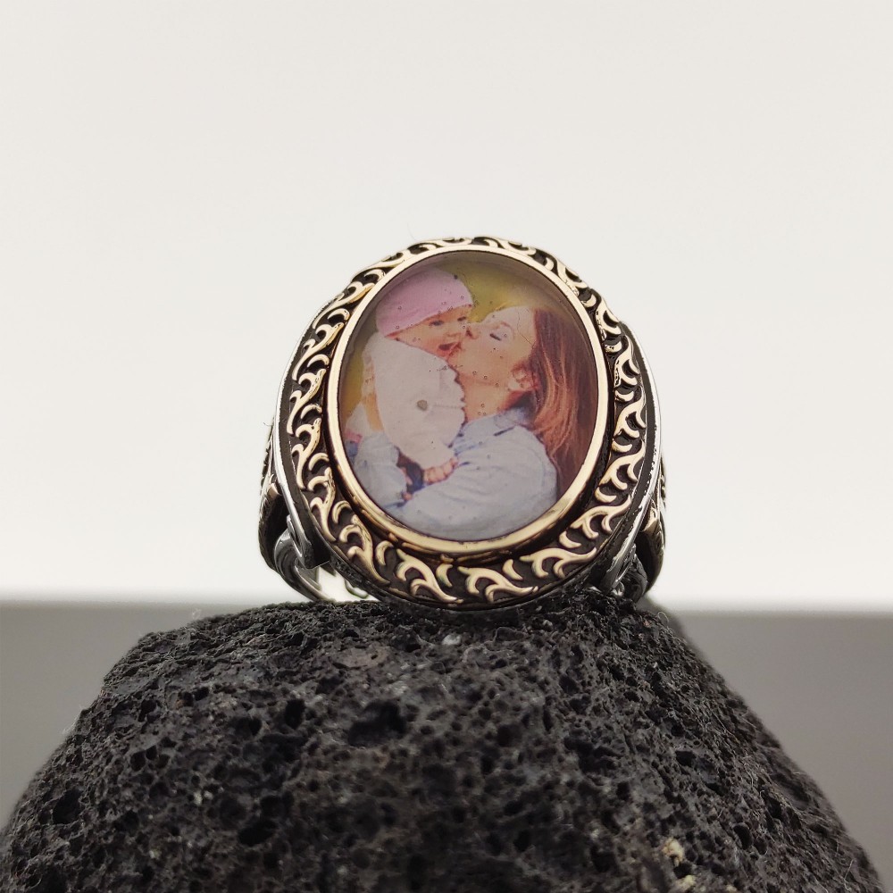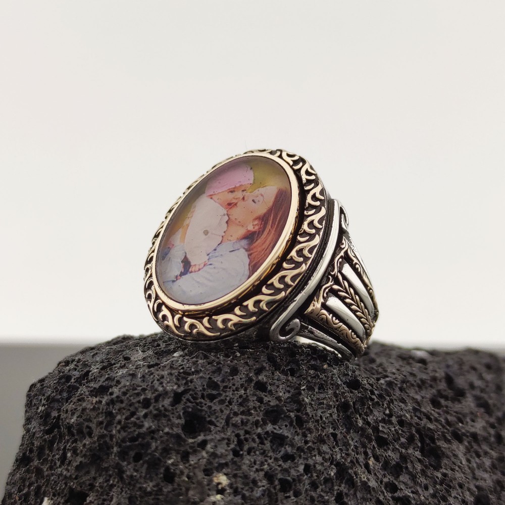 925 Ayar Gümüş Kişiye Özel Fotoğraflı Grek Sütunlu Erkek Yüzük