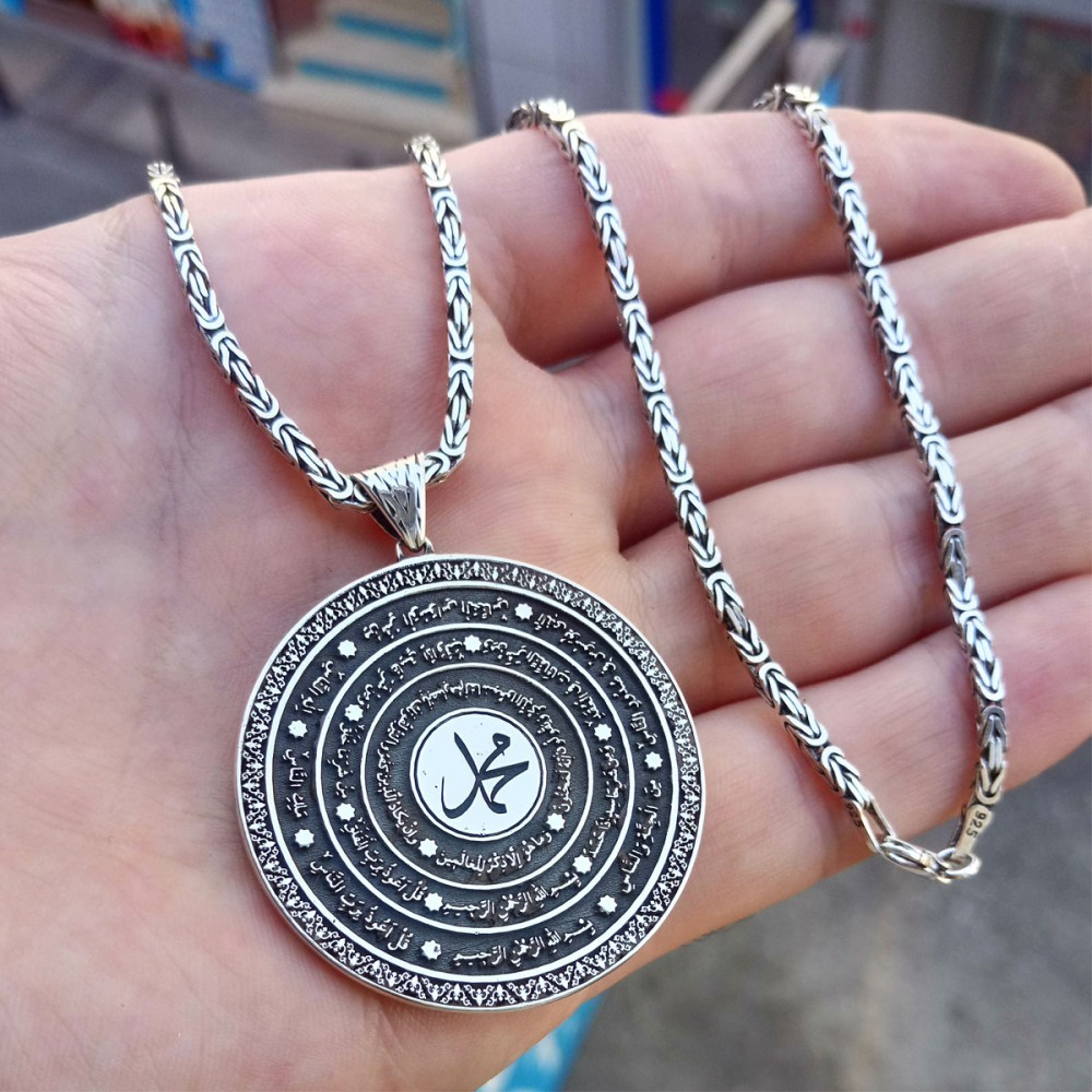 925 Ayar Gümüş Kişiye Özel Nazar Duası Madalyon Kolye ve 55 cm Kral Zincir
