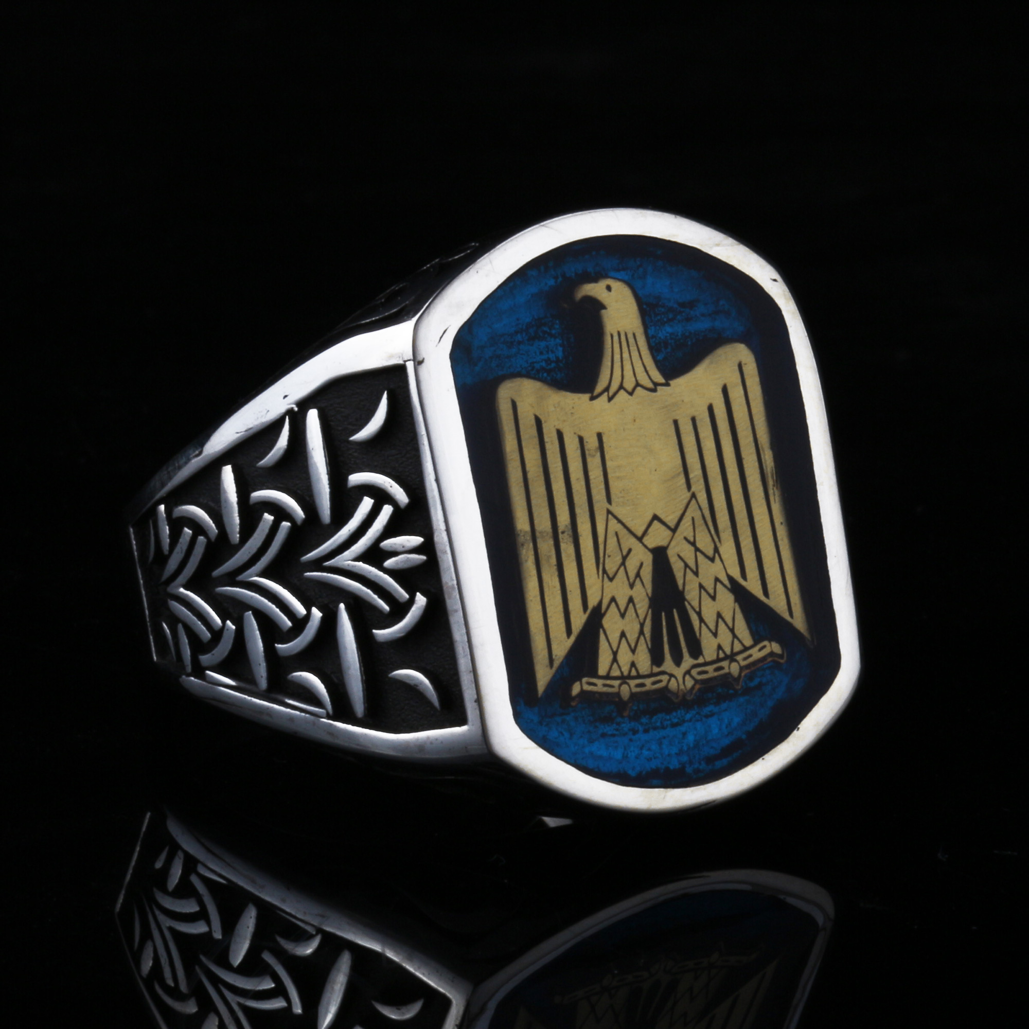 • Hükümdar Selahaddin Eyyubi’nin kullanmış olduğu kartalı temsil etmektedir.Mısır Kartalı motifine sahip bu 925 ayar gümüş erkek yüzük, gücün, özgürlüğün ve liderliğin simgesi olarak tasarlanmıştır. Eski Mısır mitolojisinde kartal, gökyüzüyle yer arasındaki bağ olarak kabul edilir ve bilgelik, cesaret ile koruyuculuğu temsil eder. Bu anlamlı motif, zarif gümüş işçiliğiyle birleşerek eşsiz bir aksesuar haline gelmiştir.