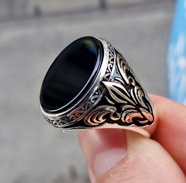925 Ayar Gümüş Motif İşlemeli Düz Oniks Taşlı Erkek Yüzük kendi firmamızın üretimidir. Ürünlerimizin tamamı 925 ayar gümüşten üretilip doğal taşlar ile tasarlanmaktadır. Ürünlerimiz Türkiye’ nin her yerine sigortalı olarak gönderilmektedir.  Kişiye özel ürün siparişleri için lütfen bizimle iletişime geçiniz.