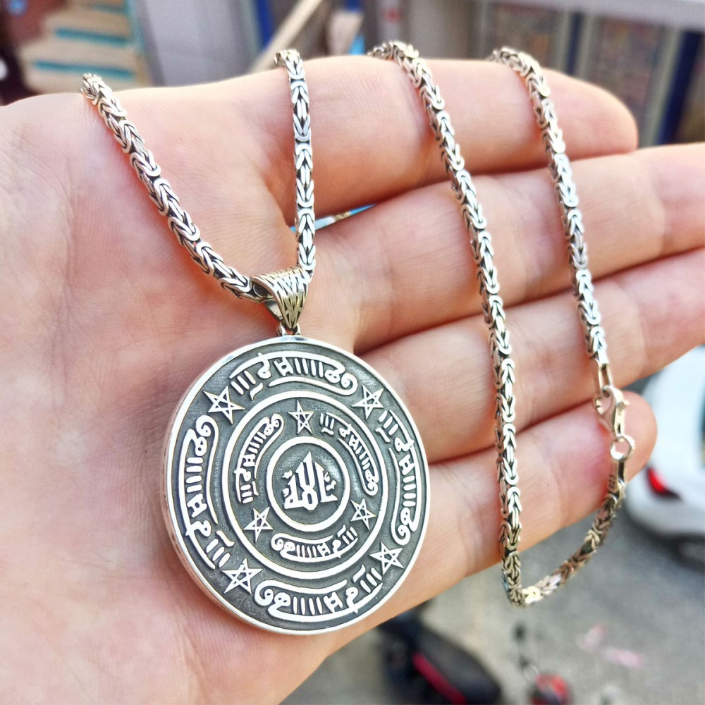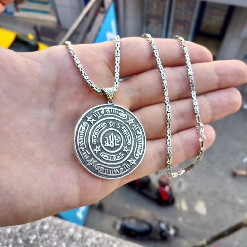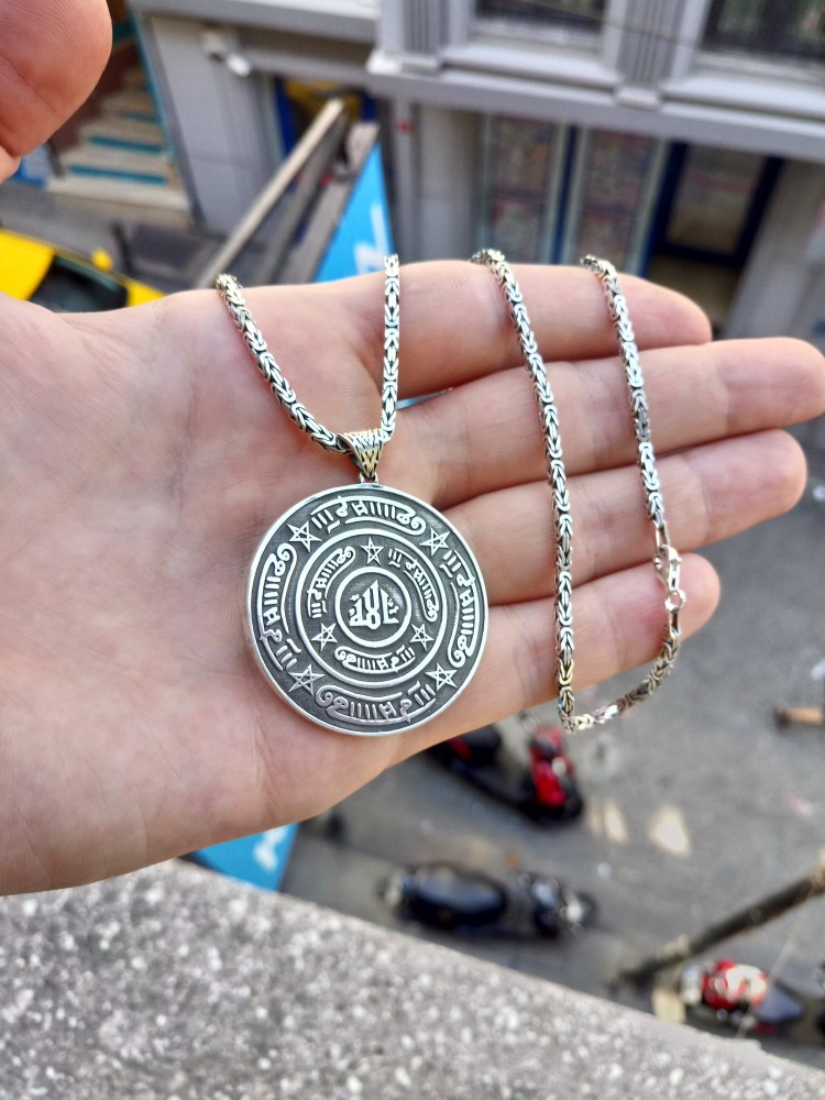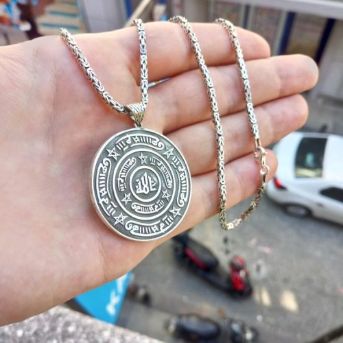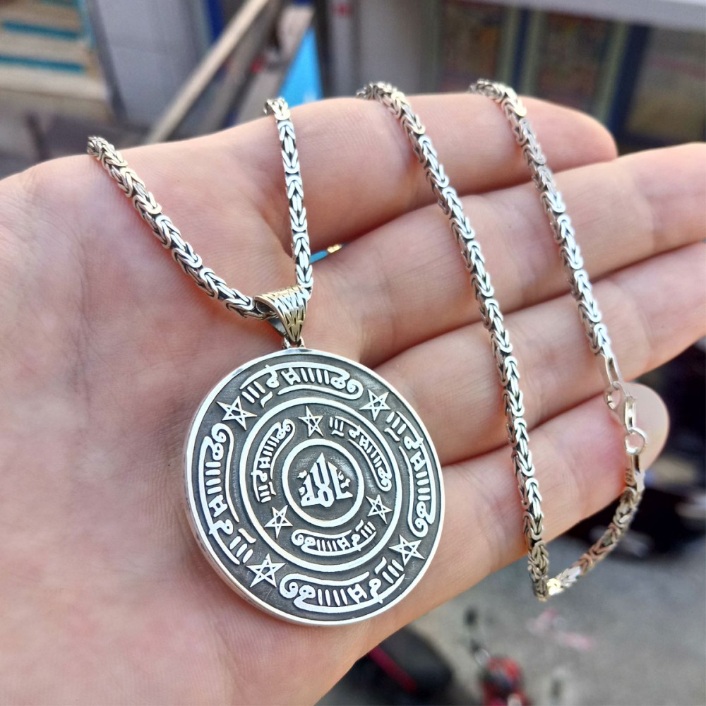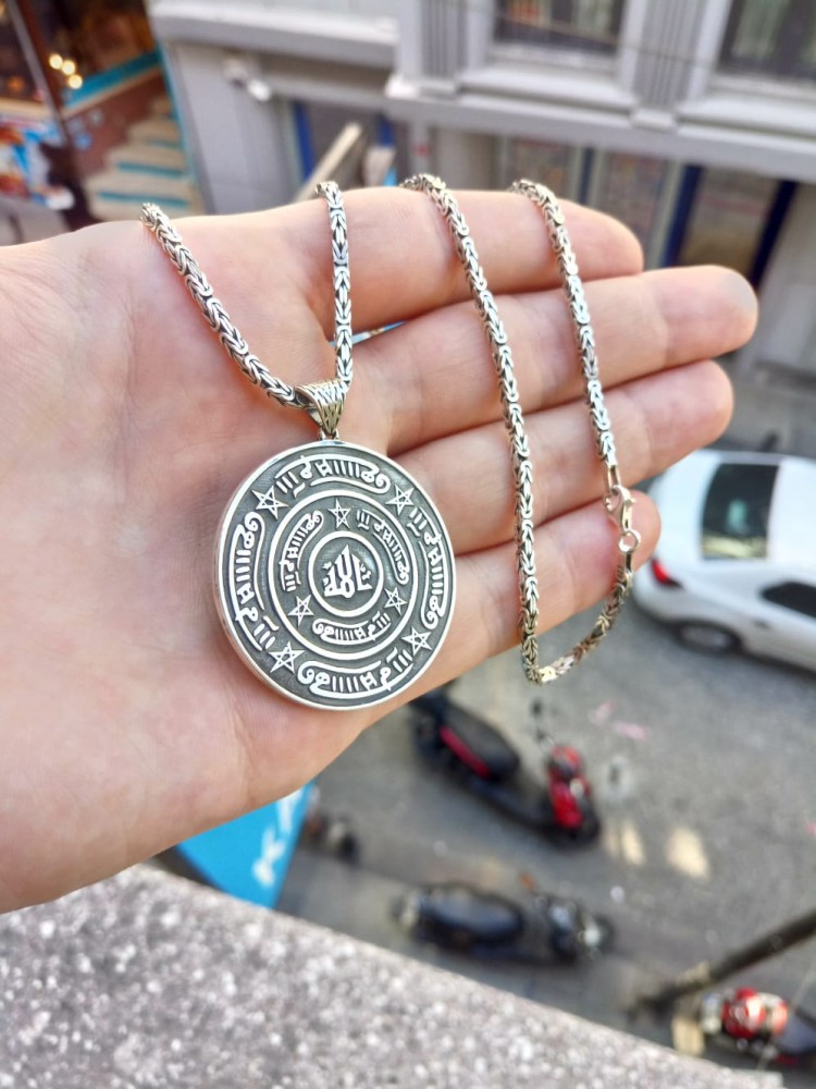 925 Ayar Gümüş Rufai Gülü Madalyon Kolye ve 55 cm Kral Zincir