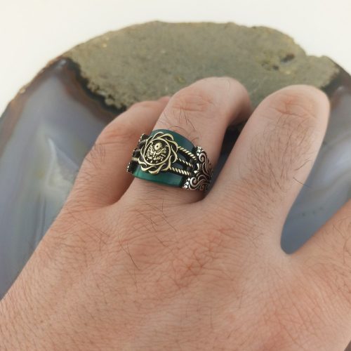 925 Ayar Gümüş Yeşil Köprü Taşlı Devlet Arması Erkek Yüzük