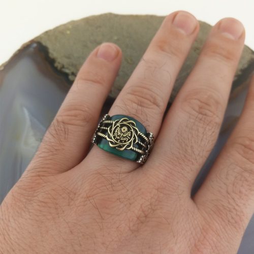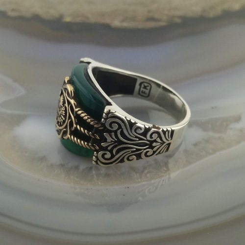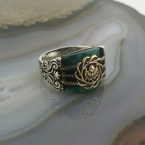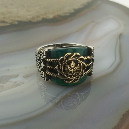 925 Ayar Gümüş Yeşil Köprü Taşlı Devlet Arması Erkek Yüzük , Kendi firmamızın üretimidir.  Ürünlerimizin tamamı 925 ayar gümüşten üretilip doğal taşlar ile tasarlanmaktadır.  Ürünlerimiz Türkiye’ nin  her yerine sigortalı olarak gönderilmektedir.