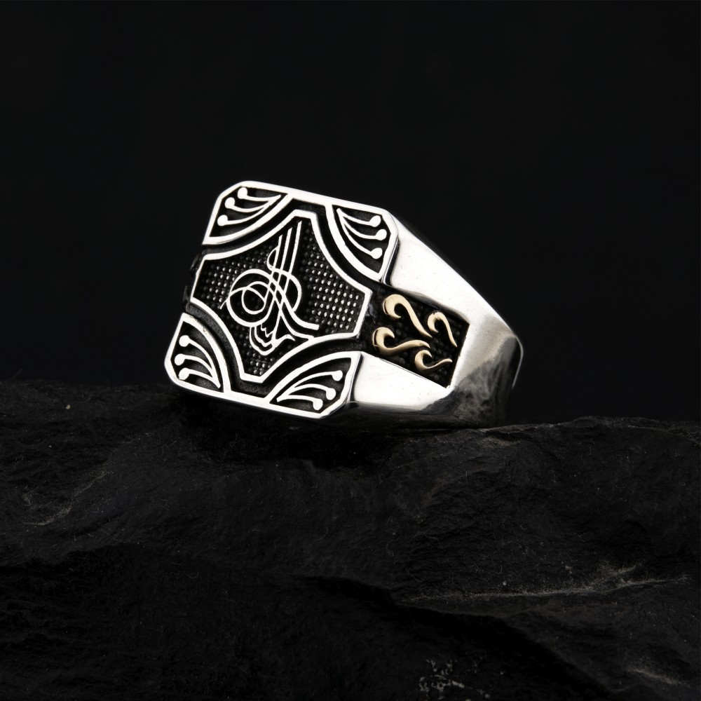 Osmanlı Tuğrası Motifli Erkek Gümüş Yüzük